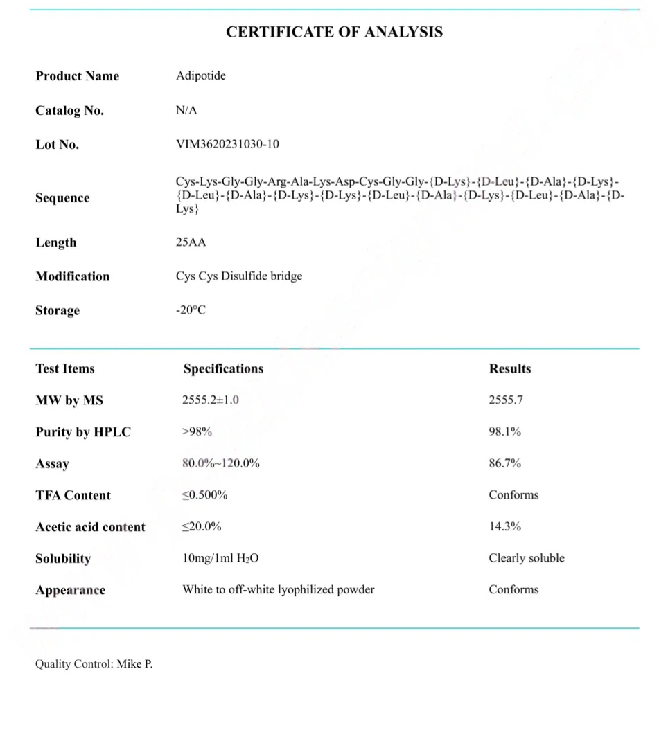 Adipotide (FTPP) COA CERTIFICATE