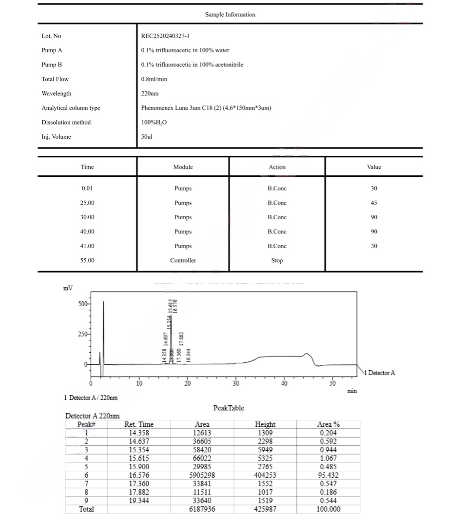 HPLC IGF-1 LR3 (Receptor Grade) Certificate