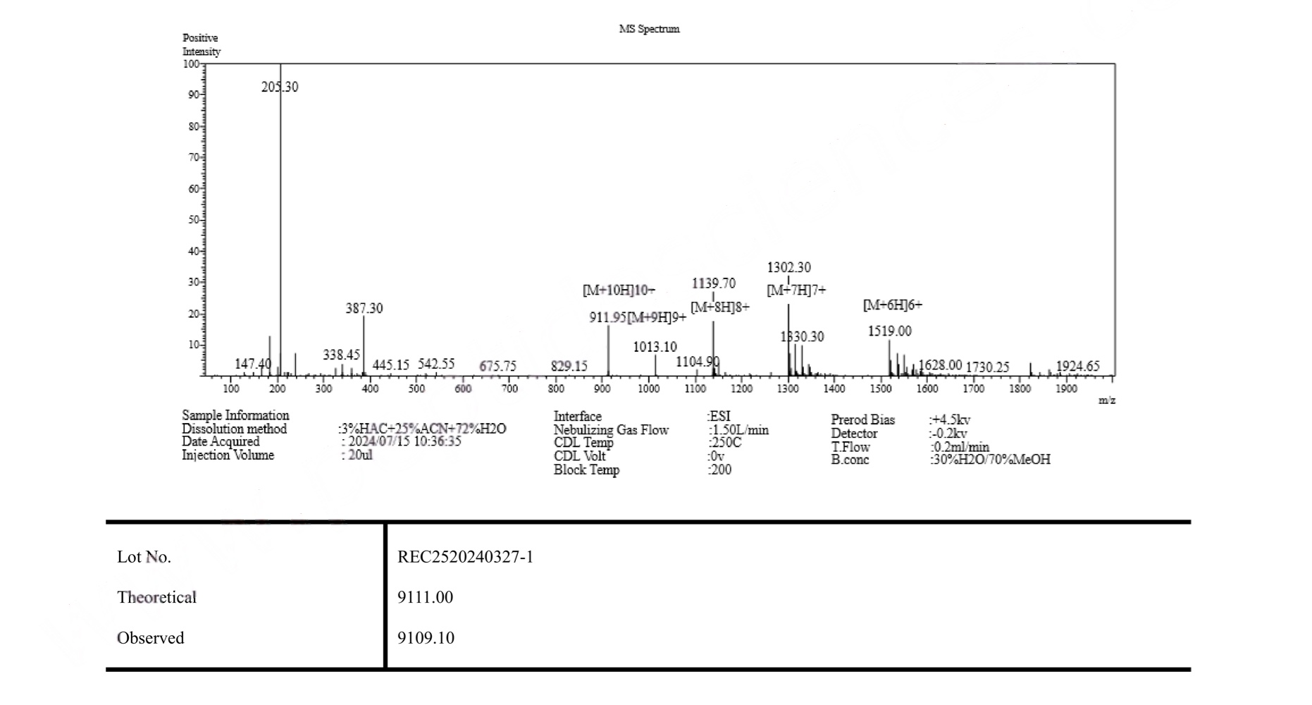 MS IGF-1 LR3 (Receptor Grade) Certificate