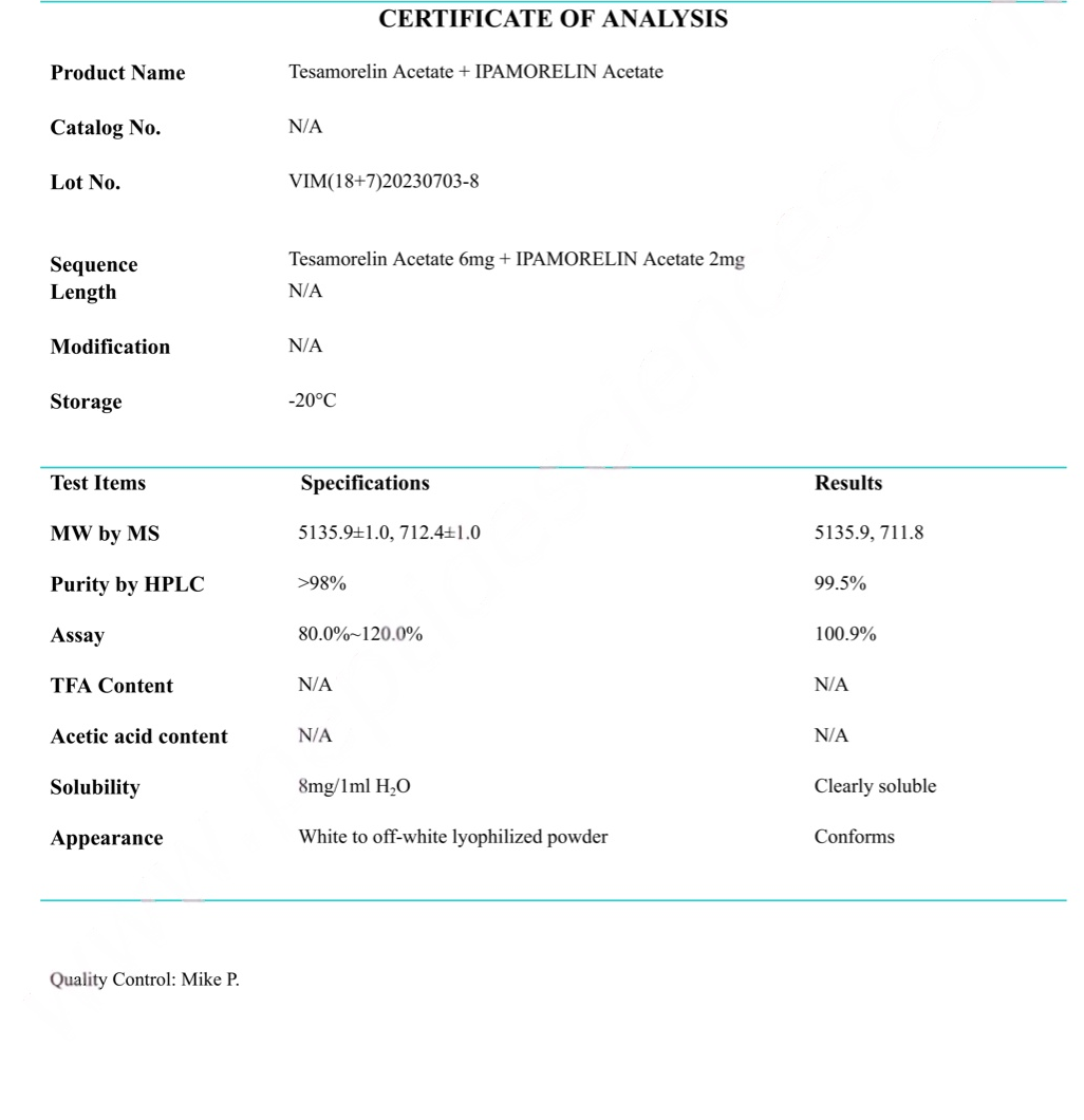 MS Tesamorelin, Ipamorelin (Blend) Certificate